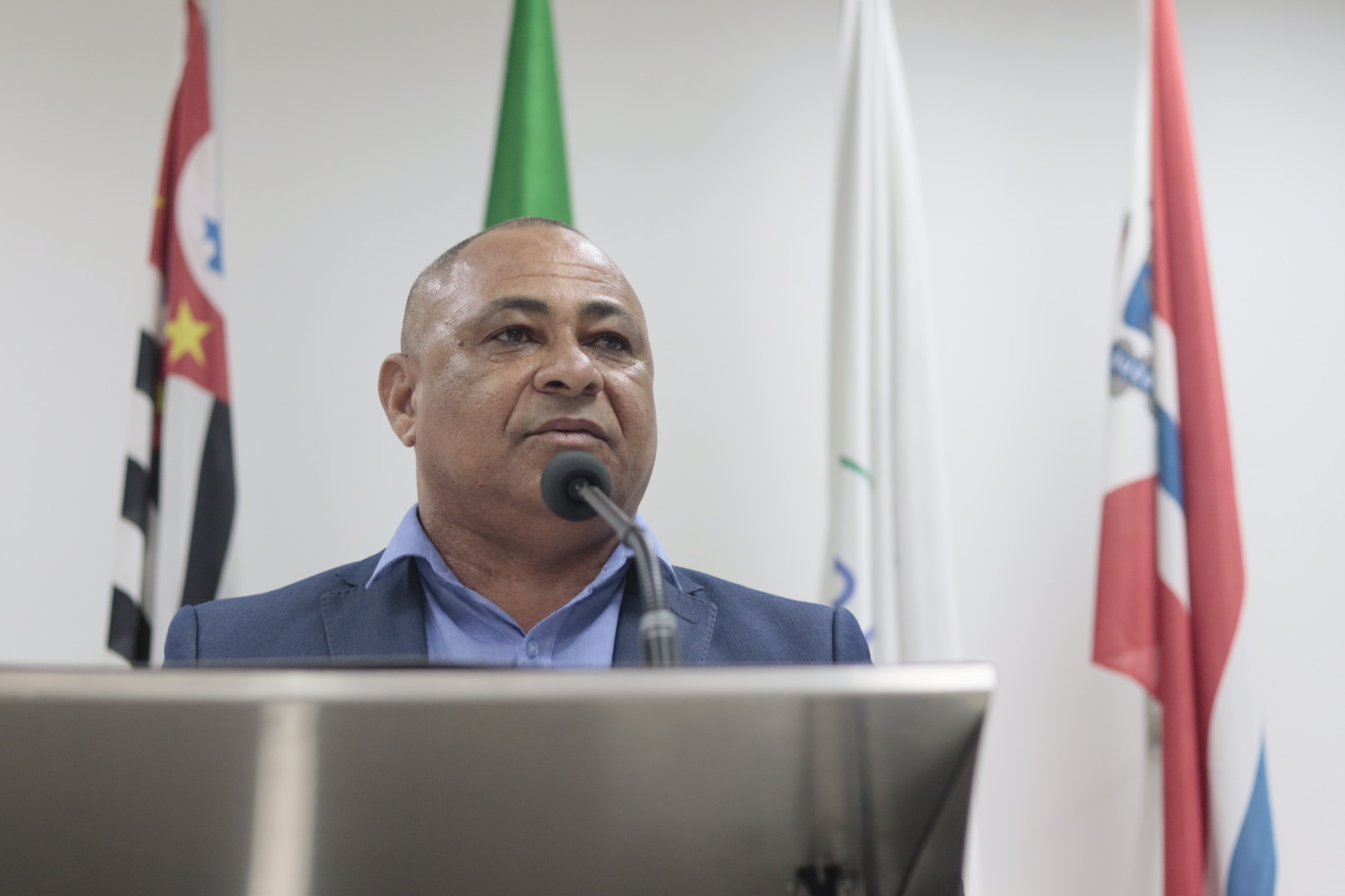 Sessao Ordinaria 17 9 25 Wanderley Costa 121Descrição da imagem #PraCegoVer: vereador Baiano da Saúde fala ao microfone na Tribuna da Câmara. Ele usa blazer azul escuro e camisa azul clara.