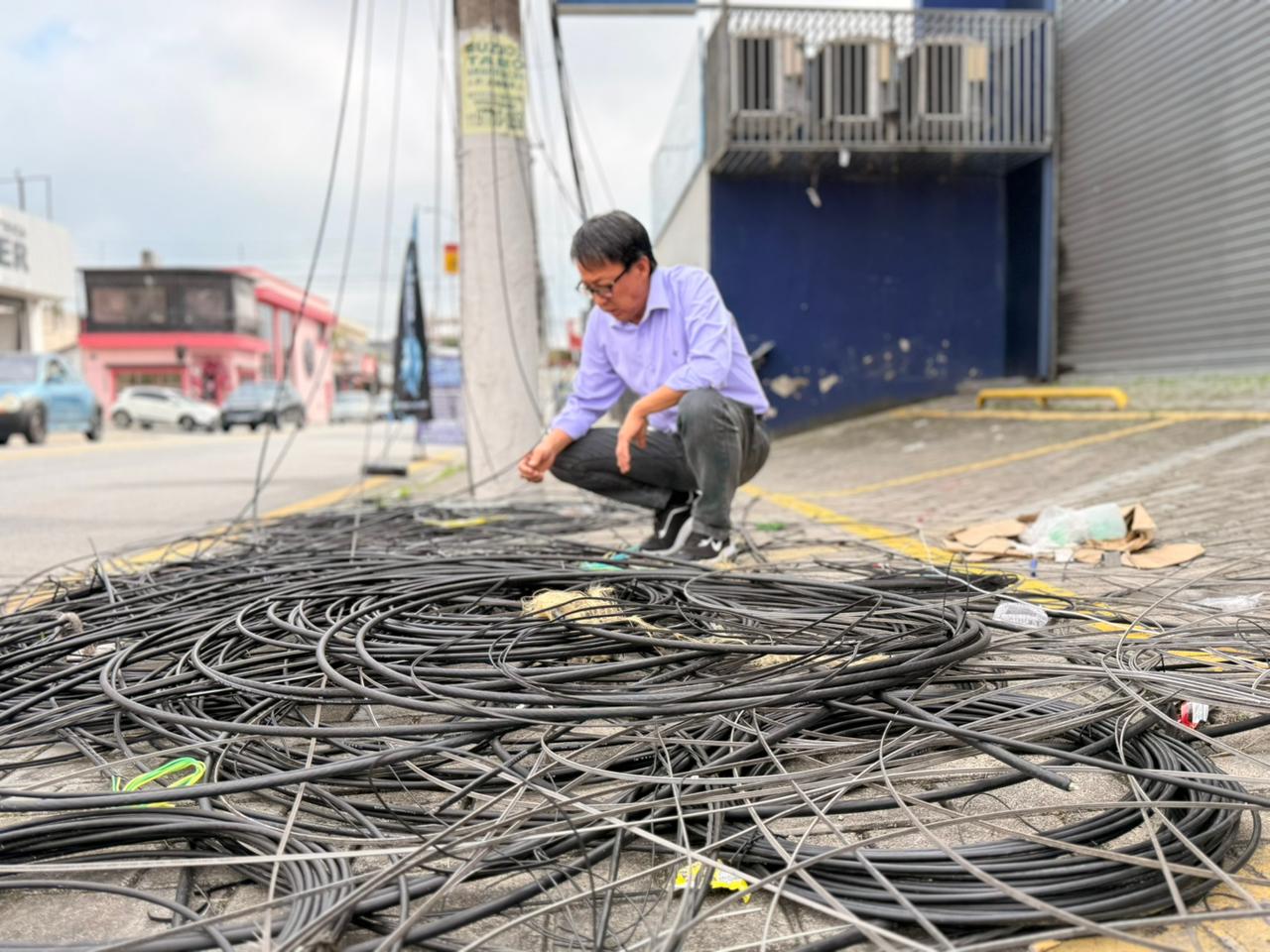 O vereador Artur Takayama (PL) encaminhou um ofício à EDP, concessionária responsável pelo fornecimento de energia elétrica no município, pedindo solução para uma grande quantidade de fios que, há dias, está na calçada da Avenida Armando Sales de Oliveira, no cruzamento com a Rua Tiradentes, na região central da cidade. Parte do material ainda está pendurada no poste do local.